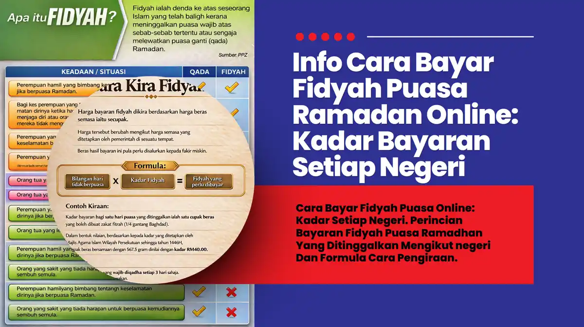 Berikut adalah maklumat kadar fidyah terkini dan pautan pembayaran fidyah secara dalam talian (online) mengikut negeri.
