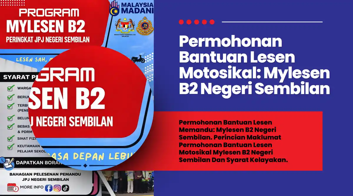 Jabatan Pengangkutan Jalan (JPJ) mengumumkan pembukaan permohonan bagi Program MyLesen B2 Tahun 2026 peringkat negeri Selangor. Program ini dirangka khusus membantu golongan B40 atau penerima STR dan tanggungan mereka memperoleh Lesen Memandu Malaysia (LMM) Kelas B2 bagi membolehkan mereka menunggang motosikal berkapasiti tidak melebihi 250 cc secara sah.